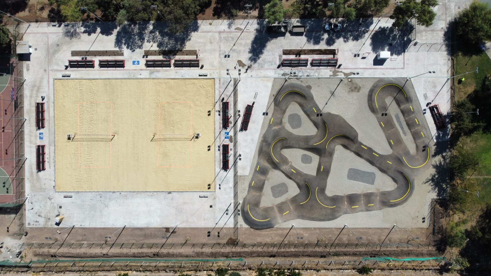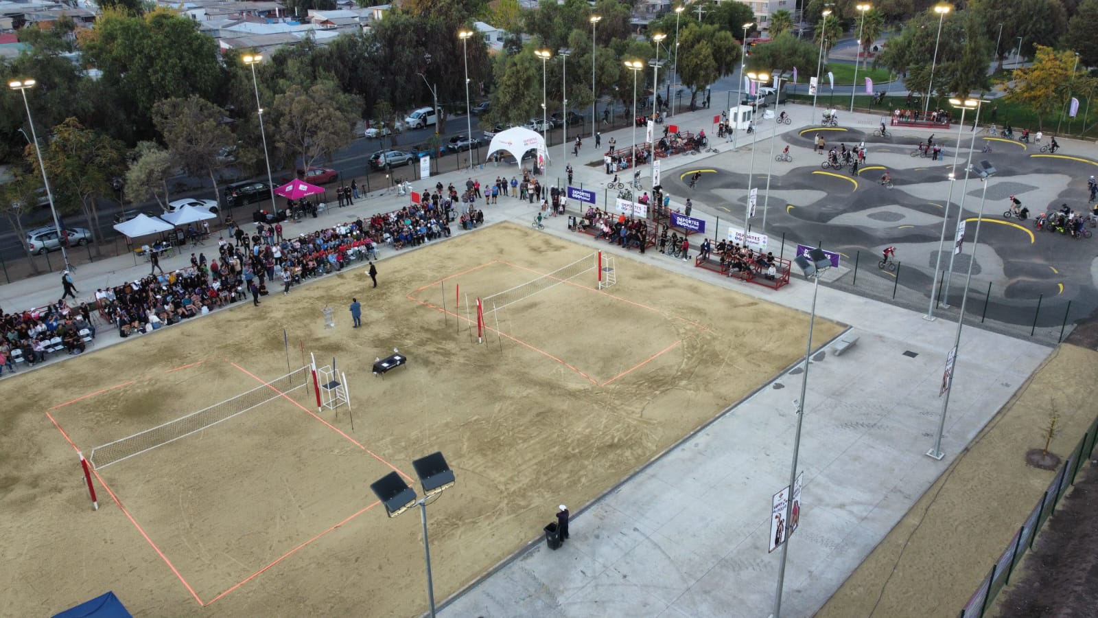 En marzo de 2025, Arkitrack inauguró en General Óscar Bonilla, comuna de Pudahuel, un proyecto integral de infraestructura deportiva y recreativa que abarca más de 6.000 m². La obra contempla canchas de vóleibol playa, un pumptrack de asfalto para bicicletas, skates y scooters, además de 2.500 m² de losas peatonales, circulación accesible para personas con movilidad reducida, cierre perimetral y sistema de iluminación LED para uso nocturno.