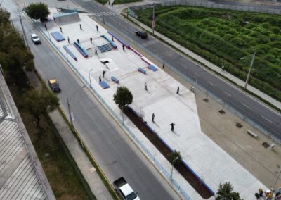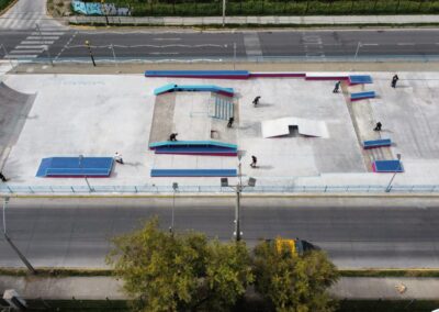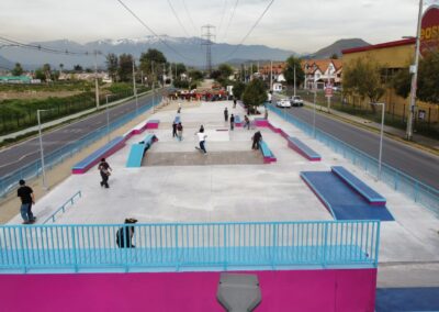 En 2024, Arkitrack realizó la remodelación integral del histórico Skatepark Las Torres en Quilicura, modernizando más de 1.000 m² de superficie para adaptarlo a los estándares actuales de seguridad y diseño. El proyecto incorporó nuevos obstáculos en hormigón, rails, rampas y manual pads, optimizando el flujo del recorrido y creando zonas para riders de todos los niveles. Con una propuesta de colores vibrantes e integración urbana, este espacio vuelve a convertirse en un referente metropolitano para el skate y los deportes urbanos, manteniendo su legado como punto de encuentro para la comunidad juvenil de Quilicura.